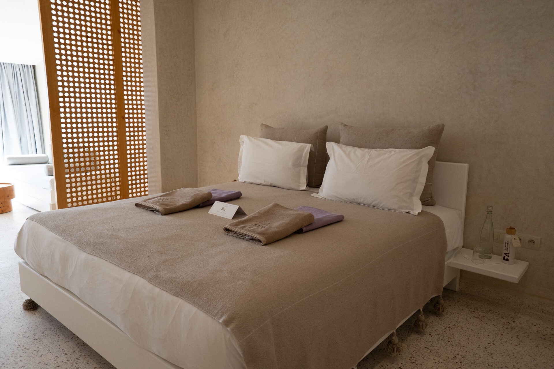 Standard Room side sea & mountain view Everything you need during your holiday seaside. Twin bed with comfy mattress, selection of pillows, bed linen & sitting area. With around 15mยฒ, the Standard room offers everything you need during your holiday by the sea. Each room is decorated in a unique, natural, Moroccan style to ensure you relax and unwind. Twin bed or family bed 3×2 m with comfortable mattress and a selection of pillows and bed linen, with seating possibilities and a private bathroom.
